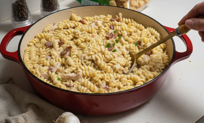 This Chicken Bacon Ranch Pasta is the ultimate weeknight comfort dish—tender rotini coated in a creamy, ranch-seasoned cheese sauce, tossed with crispy bacon and juicy rotisserie chicken. It’s hearty, satisfying, and ready in just 30 minutes—perfect for those nights when you want something homemade without the hassle.