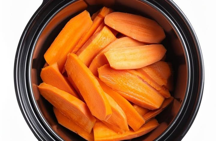 Put raw thinly sliced sweet potatoes in a slow cooker with these 4 ingredients. You’ll never eat them another way.