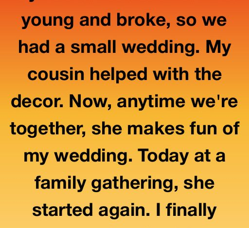 Finding What Truly Matters This is a story about learning what’s genuinely valuable, finding the courage to speak up, and realizing that worth has nothing to do with money. It all began years ago, when my husband and I decided to get married. We were young, broke, and trying to build a life from scratch. So, we planned a small, simple wedding. My kind-hearted cousin Daria offered to help with decorations, and I was truly grateful for her generosity. But over time, that gesture became a recurring source of mockery. At nearly every family event, Daria would make some joke…