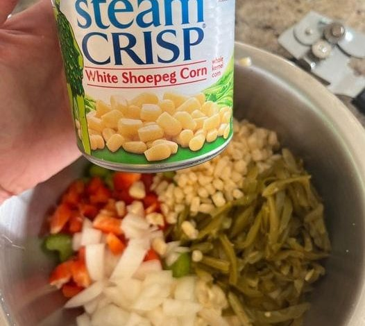 Shoepeg Corn Casserole This Shoepeg Corn Casserole is a timeless favorite—rich, creamy, and satisfyingly crunchy. It’s an ideal side dish for family gatherings, potlucks, or festive dinners. Sweet Shoepeg corn and tender green beans are blended into a cheesy, velvety mixture made with cream of celery soup and sour cream, then topped with a buttery layer of crisp, golden Ritz crackers. Ingredients IngredientQuantityCelery stalk1 largeYellow onion1/2 mediumRed bell pepper1/2 pepperShredded cheddar cheese1/2 cupShoepeg corn, drained1 can (11 oz)French-cut green beans, drained1 can (14 oz)Condensed cream of celery soup1 can (10.75 oz)Sour cream1 cupSalt and pepperTo tasteRitz crackers, crushed1 sleeveButter, melted1/2…