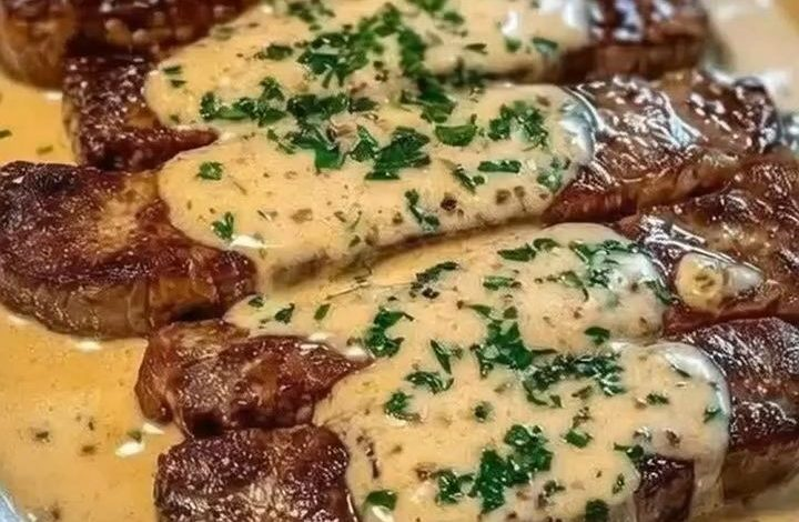 This recipe creates perfectly seared, juicy ribeye steaks smothered in a luxurious Creamy Garlic Sauce, made right in the same pan to capture every bit of savory flavor. Juicy Steak with Creamy Garlic Sauce Ingredients IngredientQuantityRibeye steaks (about 1 inch thick)2Salt and black pepperTo tasteOlive oil2 tablespoonsButter, divided3 tablespoonsGarlic, minced6 clovesHeavy cream1 cupBeef broth1/2 cupFreshly grated Parmesan cheese1/4 cupItalian seasoning1 teaspoonFresh parsley, choppedFor garnish Instructions Step 1: Prepare the SteaksRemove the ribeye steaks from the refrigerator about 30 minutes before cooking to bring them to room temperature. Pat them dry with paper towels and season generously with salt and black…