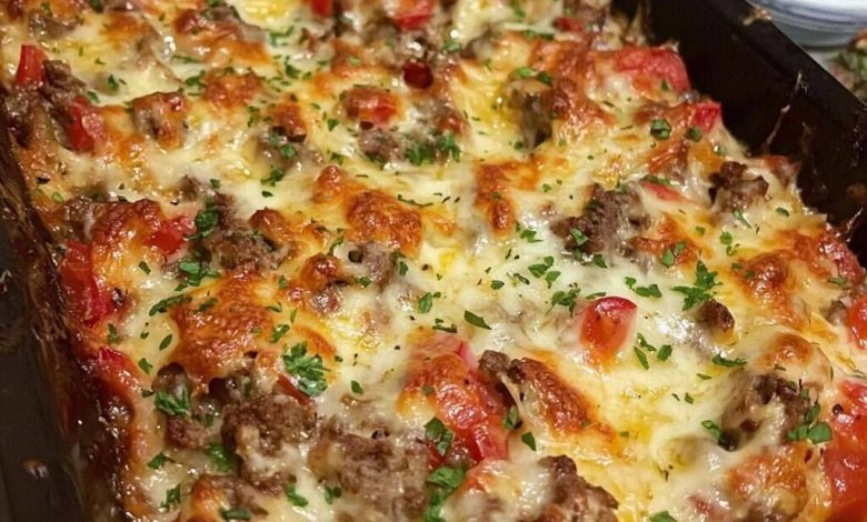 This Low-Carb Philly Cheesesteak Casserole brings all the bold, comforting flavors of the classic sandwich—savory beef, caramelized onions, and sweet bell peppers—baked together into a rich, cheesy, and satisfying egg-based dish. 🧾 Ingredients IngredientQuantityGround beef1 ½ lbsBell peppers, chopped2Onion, chopped½Minced garlic2 tspSeasoned salt1 tspProvolone cheese, sliced8 slicesLarge eggs4Heavy whipping cream¼ cupWorcestershire sauce2 tsp 🍳 Instructions Step 1: Preheat and PreparePreheat your oven to 350°F (175°C) and generously grease a 9×9-inch baking dish. Step 2: Cook the Beef and VegetablesIn a large skillet over medium-high heat, brown the ground beef. When partially cooked, add the chopped onions and bell peppers. Continue…