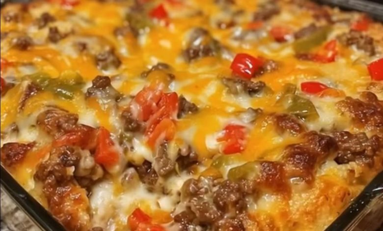 There’s something irresistibly cozy about turning a classic sandwich into a warm, oven-baked comfort dish. This Philly Cheesesteak Casserole brings together everything you love—savory beef, tender peppers and onions, creamy layers, and gooey melted cheese—into one hearty meal that fills your kitchen with mouthwatering aroma. Perfect for weeknights or laid-back get-togethers, it’s simple to prepare, rich in flavor, and always a crowd favorite. 🧾 Ingredients (Table Format) IngredientAmountGround beef or shaved steak1 ½ lbsOnion (diced)1 mediumGreen bell pepper (diced)1Red bell pepper (diced)1Mushrooms (sliced)8 ozGarlic (minced)2 clovesSalt1 tspBlack pepper½ tspSmoked paprika (optional)½ tspWorcestershire sauce1 tbspCream cheese (softened)8 ozMayonnaise½ cupEggs2 largeProvolone cheese…